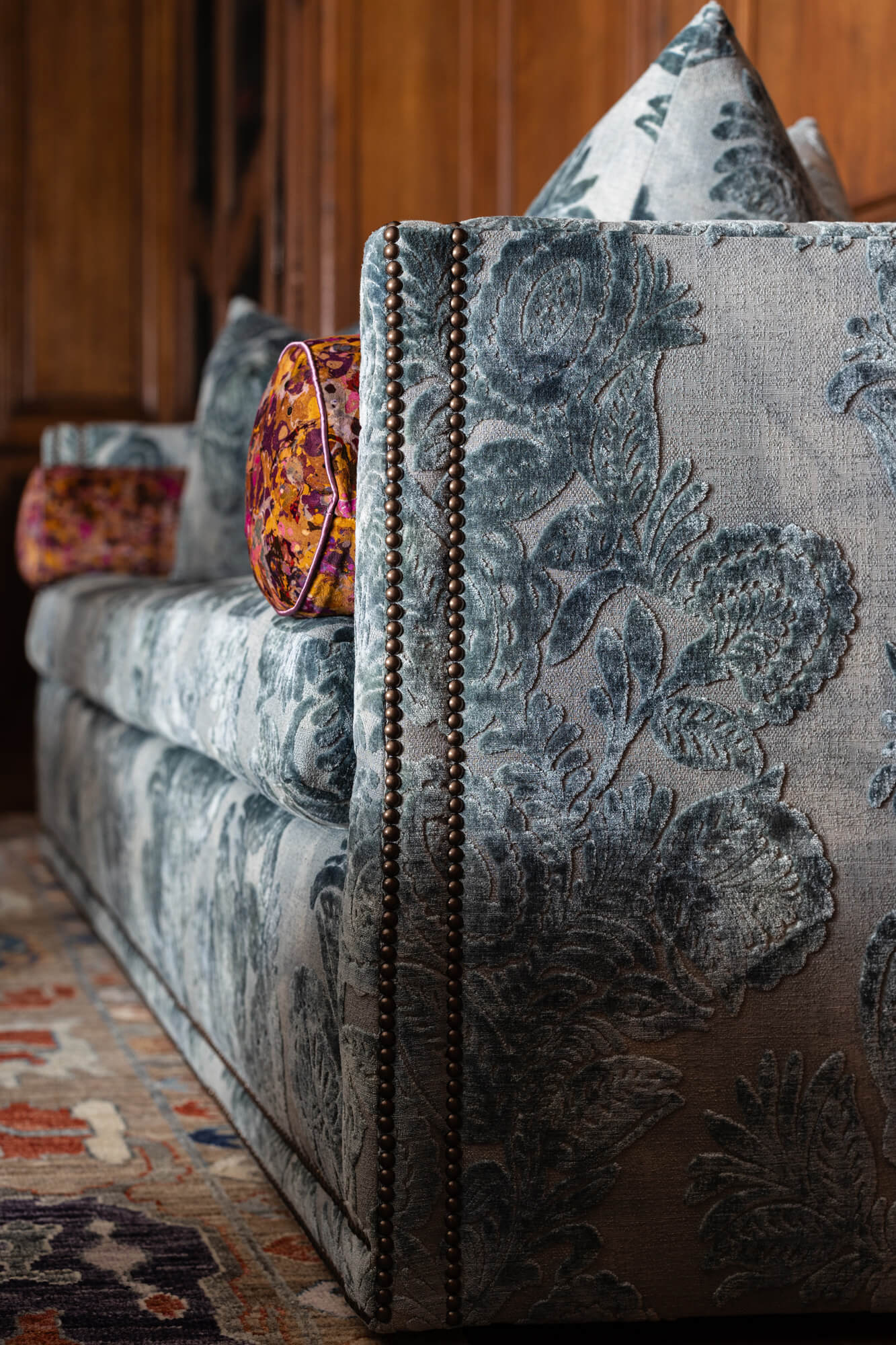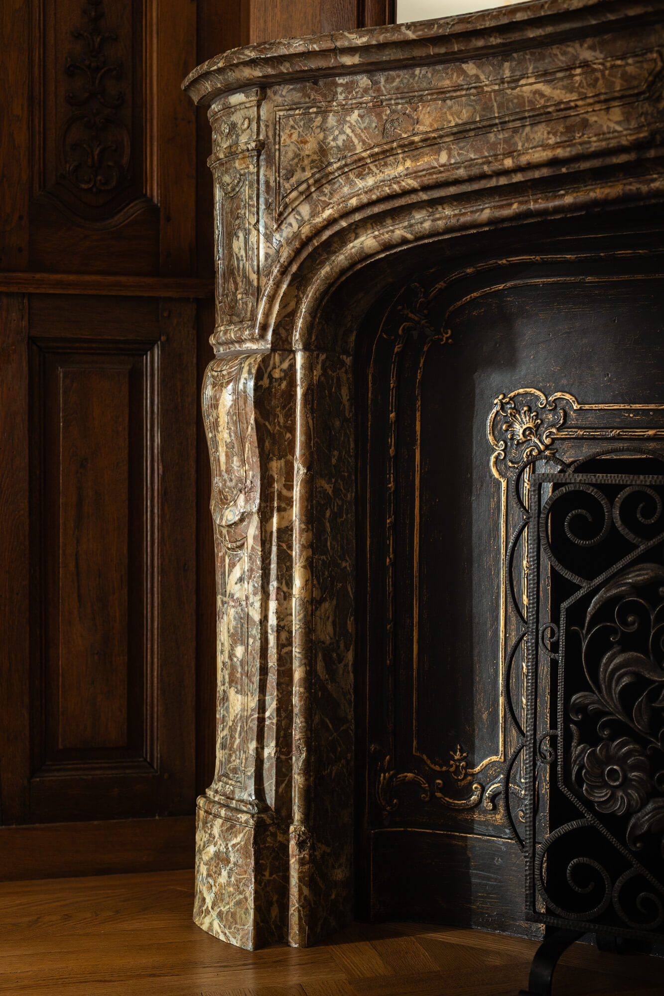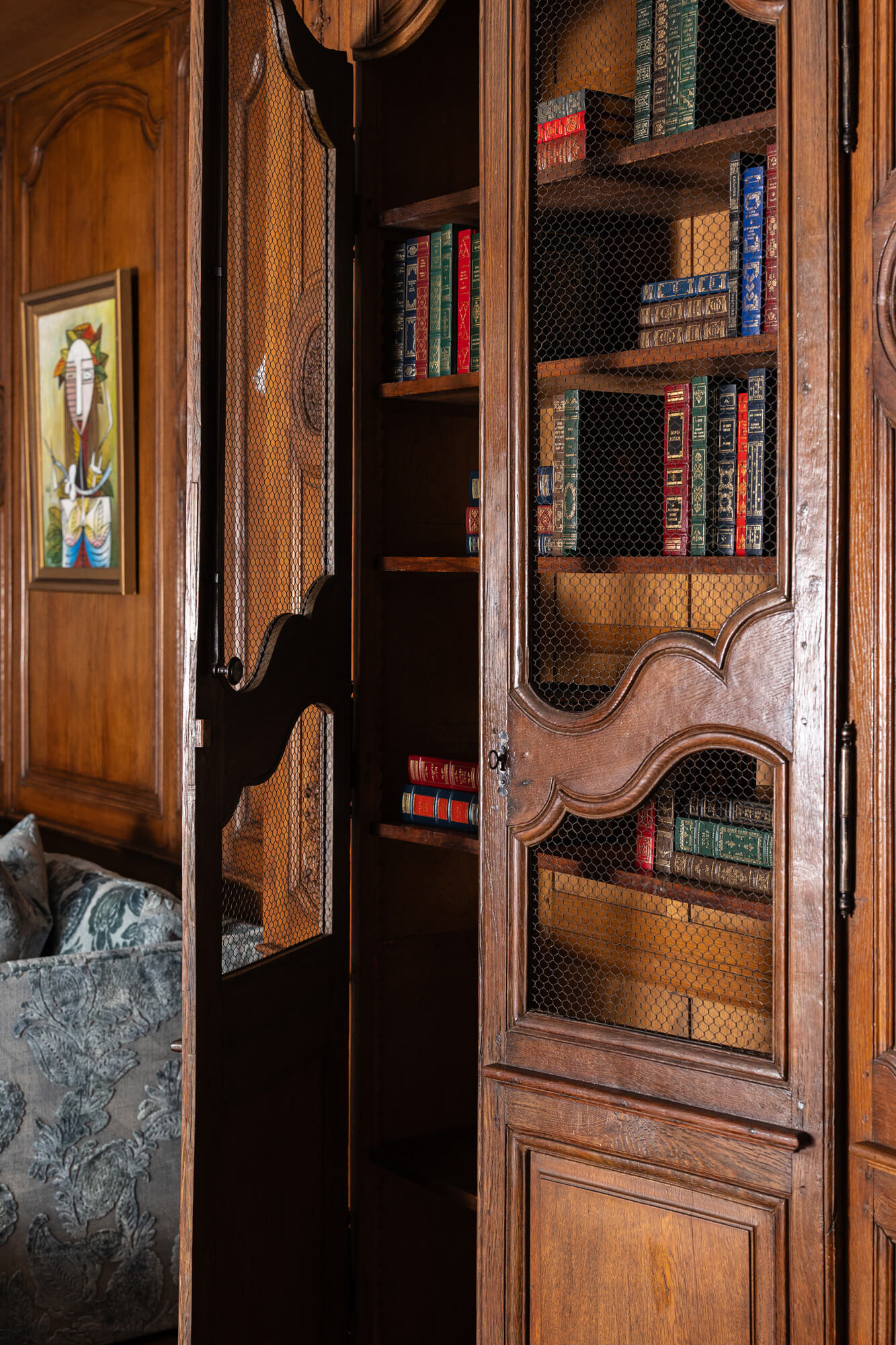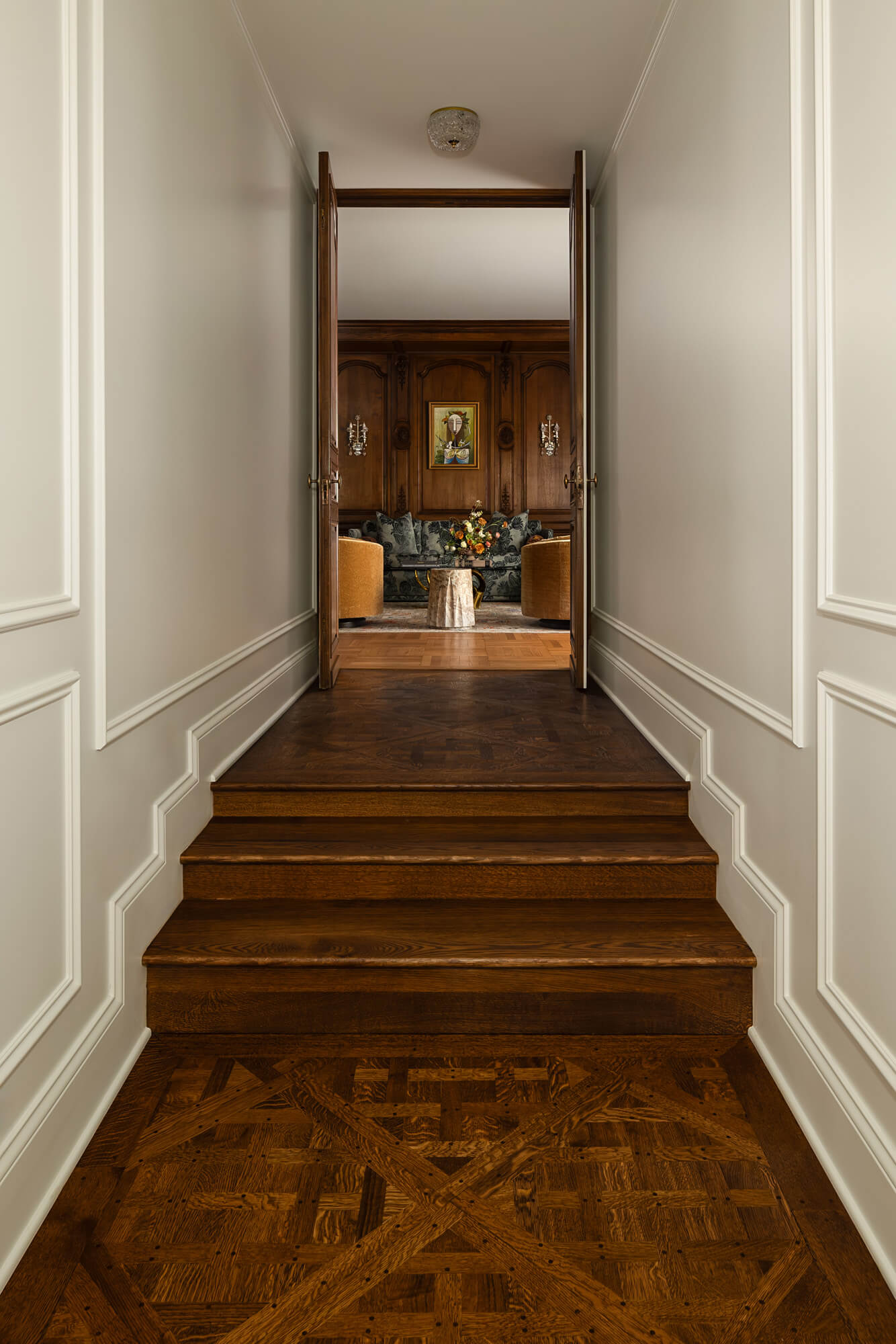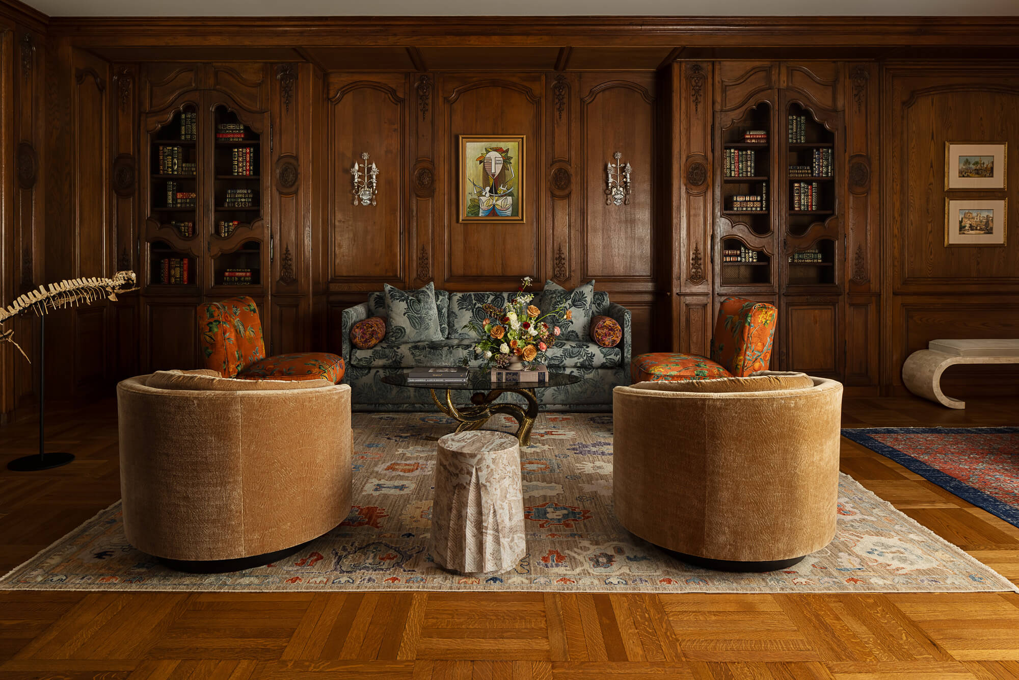 Our longtime client approached us to transform an empty attic space into a library. The challenge? The entire room is designed, inch by inch, around the architectural elements bought at auction from Marjorie Merriweather Post’s New York City penthouse. Once the architectural framework was complete, we layered in custom furnishings, tailored lighting, and artwork from our client’s impressive art collection. Each inch of the space is intentionally planned so the room feels cohesive, livable, and timeless. The final space honors its past while still functioning beautifully for today.